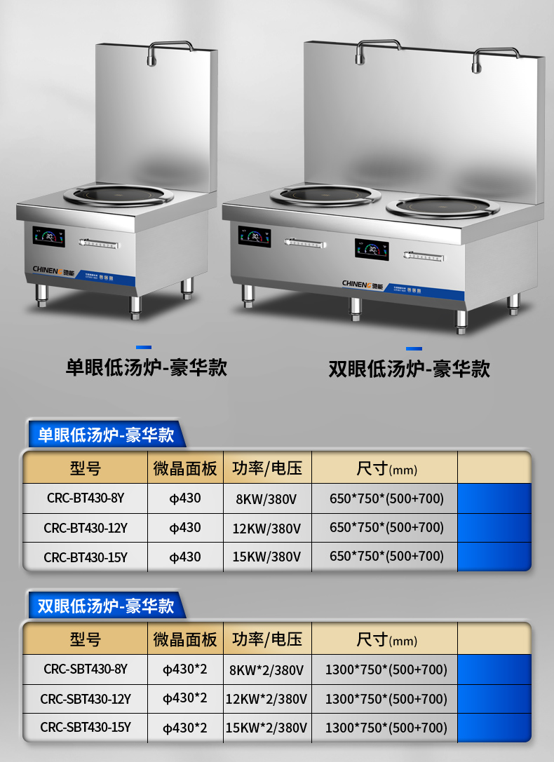 馳能會不定期根據(jù)市場反饋升級產(chǎn)品規(guī)格,頁面上的參數(shù)可能沒法及時更新,因此具體參數(shù)以真實(shí)產(chǎn)品為準(zhǔn),同時商用廚房的設(shè)備種類繁多部分產(chǎn)品并沒出現(xiàn)在頁面之中,如果您有設(shè)備需求或者定制服務(wù)請?zhí)砑酉路娇头⑿旁敿?xì)咨詢,馳能感謝您的到來!